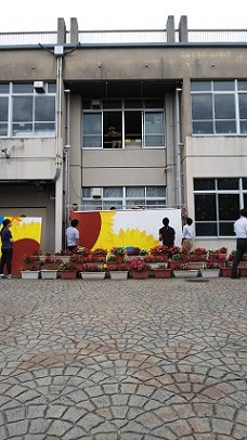 2年生が制作したタペストリーがついに完成しました。しばらく寂しかった正門がパッと明るくなりました。そして・・・いよいよ来週は向東祭の文化の部です。最後まであきらめずに,クラスで一致団結し悔いの残らない向東祭文化の部にしよう!!