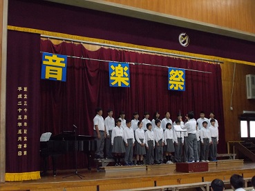 1年生合唱です。各クラスの合唱はまず3組の「心の中にきらめいて」から。次に2・5組の「明日という日が」,そして1・5組の「TOMORROW」です。