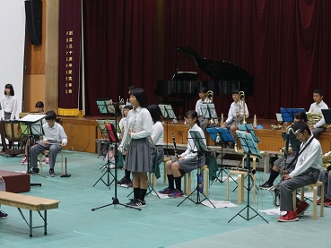 続いて吹奏楽部の演奏です。3年生にとってはこれが最後の1,2年生との演奏です。京都府吹奏楽コンクールで演奏した曲をはじめ,「花は咲く」など心に響くすてきな演奏でした。