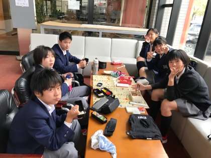 リバティ大阪の中のフロアをお借りして,昼食の時間です。しっかり食べてこの後の班別研修に備えましょう!!