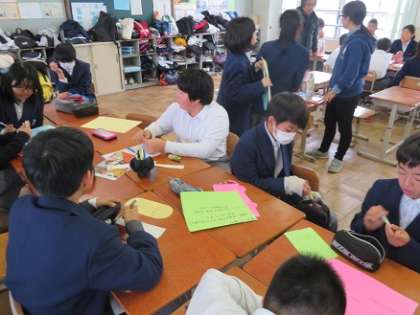 1年生は数時間かけて,9日に行った高校見学のまとめをしています。見学に行った高校ごとに分かれて掲示物を作成し,来週,発表会を持ちます。高校に行って得たことをしっかりとまとめてくれています。発表会も楽しみです。