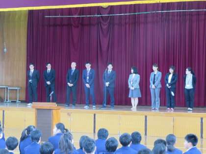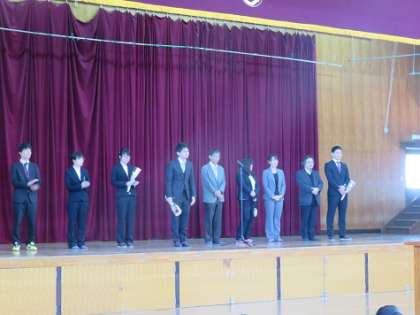始業式では校長先生から学校目標についてお話がありました。「愛」と「学」と「志」の3つの言葉はもうみんなの中にもしっかりと刻み込まれていると思います。人を大切にし,学びと向き合い,自らの進路を切り拓いていきましょう。そして2,3年生の学年担当の先生方,部活動顧問の発表です。担任の先生の発表の時には歓声が沸き起こっていましたね。