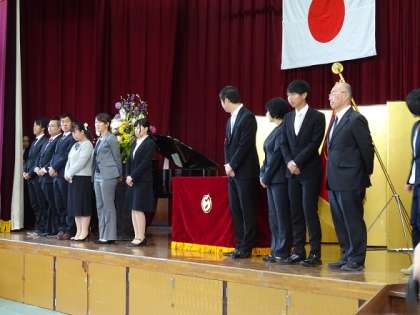 そして生徒会の代表の人から「歓迎の言葉」があり,新入生の代表の人からは「誓いの言葉」が力強く読み上げられました。最後に1年生の学年の教職員の紹介と担任の先生の発表がありました。