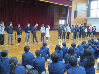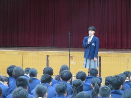 学年主任の先生の話の次に生徒会長からも抱負が話されました。みんなで一緒によい学校を作っていきましょう。その後,部活動顧問の紹介がありました。