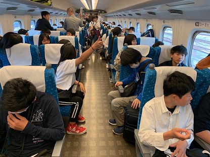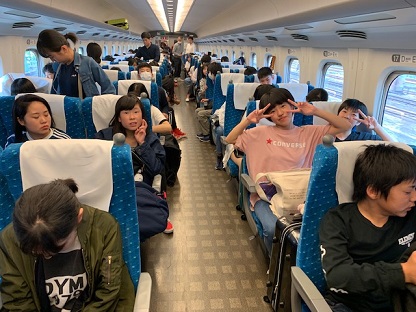 新幹線でのフリータイム。昼食も終わり,大きい荷物と小さい荷物にわけて下車準備です。もうすぐ下車です。