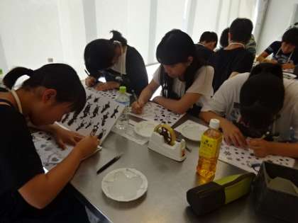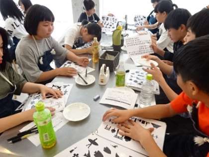 体験学習がスタートしました。サンドグラス体験の様子です。