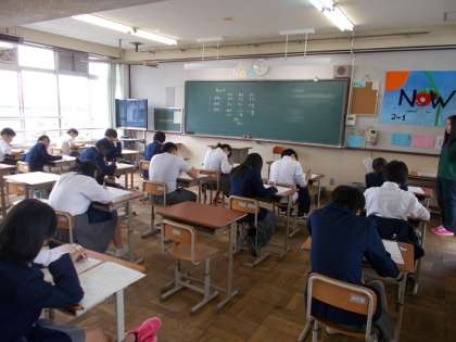 1年生にとっては中学校入学後,最初の定期テストです。テストはどうでしたか?写真は1,2年生のテストの様子です。問題用紙と向き合うことは,自分自身と向き合うことです。最後まであきらめずに頑張りましょう。
