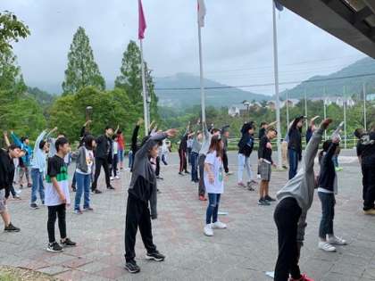 おはようございます。朝の集いを行いました。中央委員が司会進行をしました。昨日の振り返りをして,本日の予定について確認しました。そして早朝の定番!「ラジオ体操」を体育委員が前に立って,みんなで元気よくラジオ体操を行いました。本日も元気よく頑張りましょう!