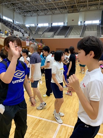 お互いを励ましあって「ハイタッチ」です。チームワークはばっちりです!!
