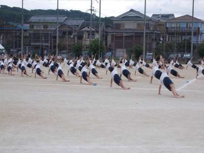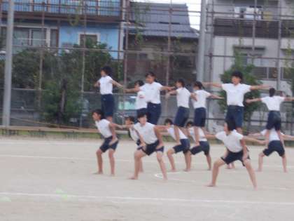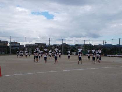午後の部,予定通りスタートし,1つ目のプログラム 3年生による「組体操」です。