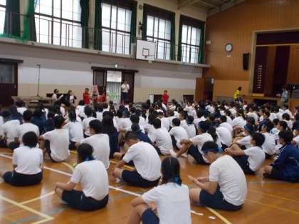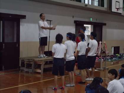 雨のため急遽,体育館での閉会式となりました。今日1日のみんなの頑張りをたたえることができました。ほんとに向島東中一丸となり見事,体育の部を成功させました。体育の部は終わりました。次は文化の部です。来週からの展示・舞台・合唱の取組に今日の頑張りをつなげていって欲しいです。保護者の皆さま,地域の皆さま,あたたかい応援ありがとうございました