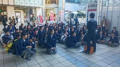 班別学習を終え,各班が京橋駅に集合できました。14:30の集合時間がしっかり守れました。今回の校外学習の様々な企画をしてくれた中央委員から今日のふり返りのまとめがありました。このあと観月橋に向けて帰ります。