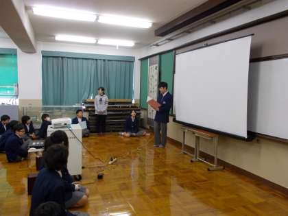 2年生は今日,修学旅行に向けての学年集会を持ちました。12月に修学旅行委員からスローガンや目的の発表がありましたが今日は持ち物やルールについて委員のみんなから発表がありました。修学旅行委員で話をして,みんなが気持ちよく,そして楽しく過ごせるように決めてくれた内容です。みんなで協力していきましょう。来週からは平和学習も始まります。沖縄の地で平和についてしっかりと学ぶために,過去に沖縄であった悲しい歴史と今ある課題,そしてこれからについて事前に学習を深めましょう。