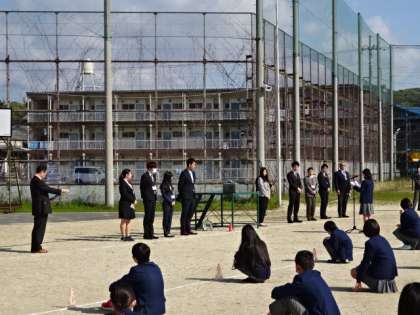暖かな日差しの下,しっかりとした態度で式に臨む皆さんを見て,