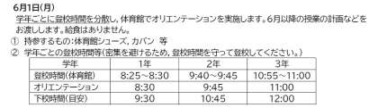 本日の登校日と6月1日について