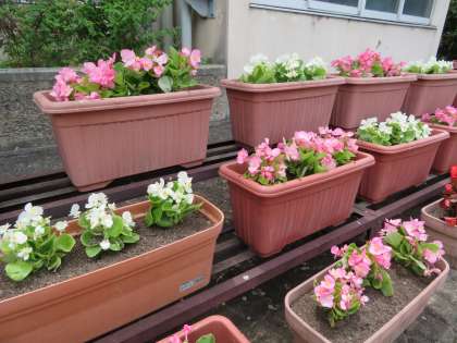 生徒会本部のみんなが花の植え替え作業をしてくれた花が花壇やプランターにきれいに咲いています。あじさいの花もきれいに咲いています。まもなく梅雨の季節に入ります。蒸し暑さも増してきますが,この時期に咲く花々に心が癒されますね。