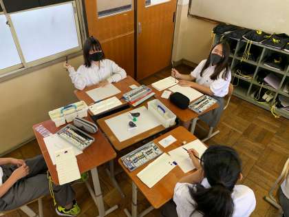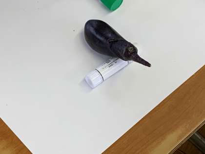 ナスやレモン,よく見るとつやつやしていたり,つぶつぶしていたり,そのフォルムは簡単に表現できるものではありません。それを,自分がどのように対象をつかんで表現するのか,これもまた意欲的に取り組むことになります。皆さんの書き上げた完成品,楽しみです!