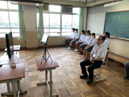 7月31日、ZOOMで全校集会および一学期終業式を行いました。中央委員長から、第一回テストの前に行われたベル着点検結果の表彰が行われました。その後、終業式を開会し、校長先生と生徒指導部長の先生から夏休みに向けてのお話がありました。そして最後に、先日行われた生徒総会での、議案に対する回答が、生徒会長の司会のもと発表がありました。