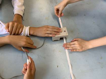 先週のことですが,3年生の理科の授業にお邪魔しました。タイマーで記録用紙に打点することで,速さの変化を読み取る授業です。等速直線運動って単語をふと思い出しましたが,なかなか目にすることはありませんよね。だからこそ,こういう実験が大切です。みんなで協力して,目で見て確かめてみましょう!