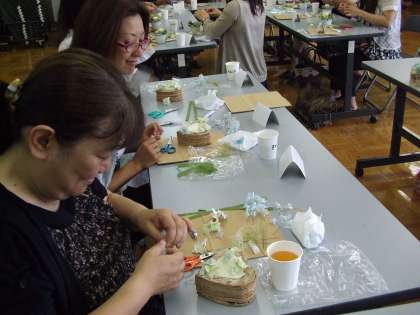 PTA文化教室を行いました。今年は,プリザーブドフラワー教室を行いました。フラワー装飾の講師を招いて,白樺ベースの作品を作りました。細かい作業もあり,苦労もしましたが,すばらしい作品が完成しました。この作品は,向東祭文化の部で展示しますのでご覧下さい。