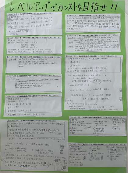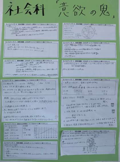 3階の柱に掲示されているのは,この範囲を学習し,さらに調べてみたいことにチャレンジした人々の,意欲の塊です。よく頑張っているとともに,これは役立つ!と思う内容がいっぱいです。