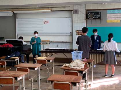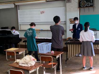 昨日のことを紹介するコーナーです。5組さんは,文化の部に向けて,合奏,モザイク画に取り組んでいます。みんなで力を合わせないと完成しない取組であるだけに,自分たちで放課後も残って取り組んでいます。