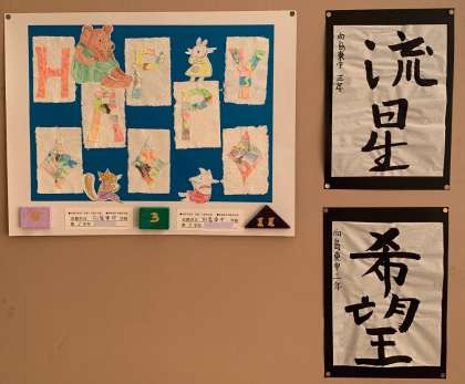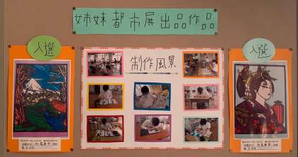 文化の部,展示の紹介第1弾は,5組さんです。美術作品が姉妹都市交歓作品展に出品され,うち2つが入選しました。おめでとうございます。どこの国の美術館に行くのかな?また,そのほかの作品も,温かさが感じられる良い作品です。また,畑で栽培した夏野菜を使ったレシピ,どれもおいしそうですね!