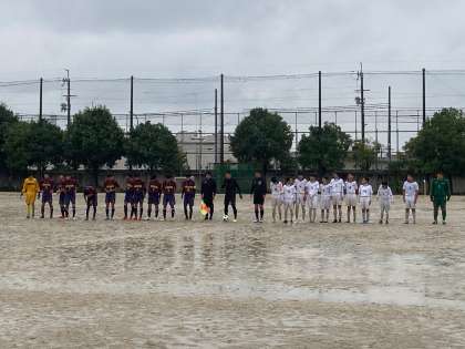 10月17日(土),夏季大会代替試合ベスト8をかけたサッカー部の熱戦が,雨の中,洛南中学校グラウンドで行われました。京都市屈指の強豪・修学院中学校を相手に善戦し,0−4と負けはしましたが,力を尽くしてくれました。日々の朝練を積重みね,ここまでよく頑張りましたね。おうちの方が朝から送り出してくださったことに感謝しつつ,これからの自分につなげてください。
