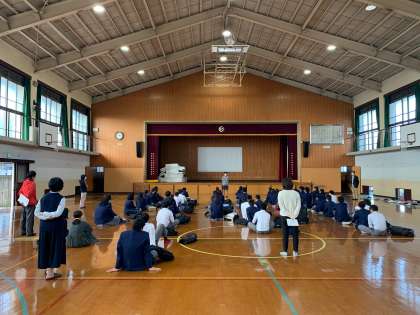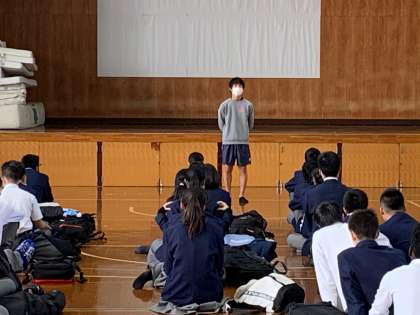 7限,3年生は体育館に集合し,明日からの修学旅行に向けて,最終確認を行いました。修学旅行委員からの話,先生方からの話に耳を傾ける様子は,温かい雰囲気を感じました。当たり前に修学旅行に行くことができていた時には気付かなかった,「修学旅行に行ける喜び」を学年主任の先生がお話になっていましたが,まさに,この時を迎えるのは,人生一度きりです。この学年で一緒に創る思い出,たくさん持って帰ってきてくださいね。何より,今日は早く寝て,明日に備えてください!