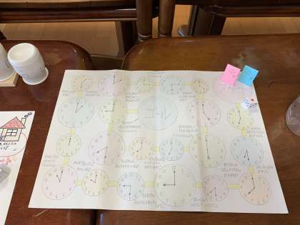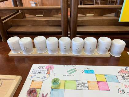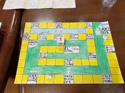 すごろくのマスに,一日の生活の出来事が書かれています。うまく進めば,子供たちは生活に必要なことを覚えることができますね。