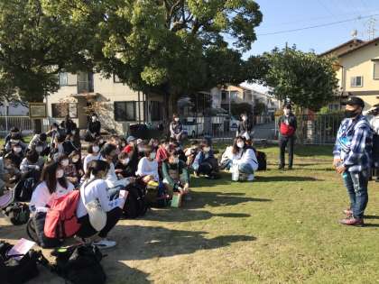 秋晴れの下、丸町公園に集合した3年生は、無事出発しました。1泊2日の伊勢志摩の旅、満喫してくださいね!