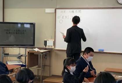 今回は、1年生では障碍者差別問題を、2年生では在日コリアンの人々の歴史を、3年生では同和問題を取り上げ、差別とは何か、なぜ差別が起こるのかについて考えます。