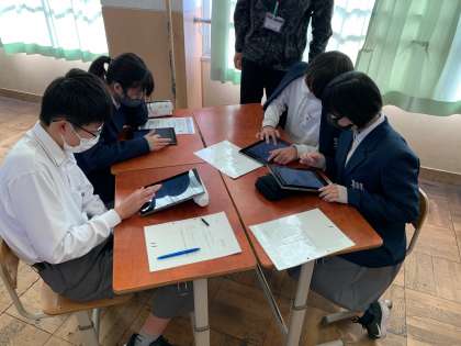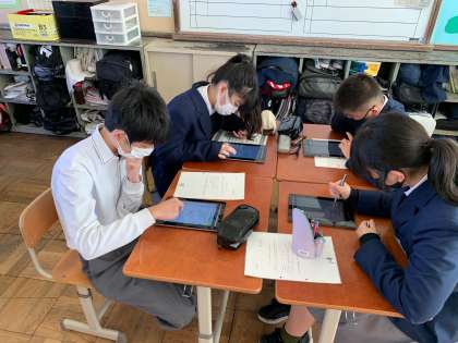 今日の数学では,キュビナを使って図形の証明に挑戦です。ゲーム感覚で取り組めているので,わいわい楽しみながら問題に取り組んでいます。