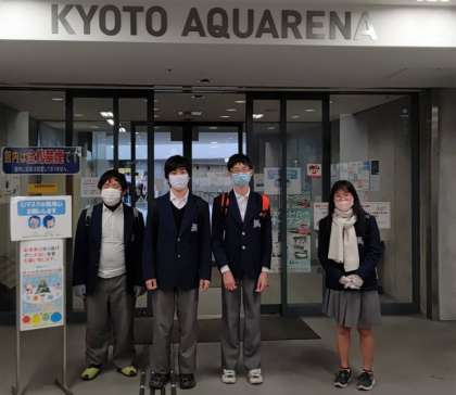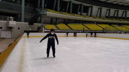 冬らしい寒さになってきました。今日の5組さんは,校外学習で「京都アクアリーナ」に行きました。このシーズン,アクアリーナではスケートをすることができます。電車やバスを使って到着し,リンクへ。いい感じで軌跡を描いていますね!