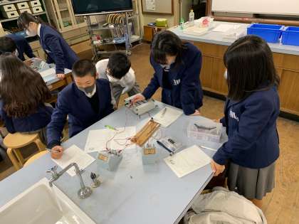 自分たちで,電圧を強くすれば電流が多く流れることを確かめるため,回路を作りました。作り方を見ながら,なぜその仕組みになれば,電圧を大きくすれば電流が多く流れることを確かめられるのか。仕組みがわかれば,理屈が見えてくる。理屈がわかれば,自分で活用できるわけですね。