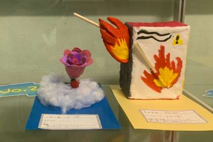 自由な発想で作られた木の実は,楽しい力を与えてくれます。1年生の豊かな感性をお楽しみください!