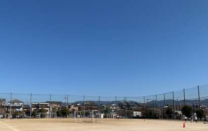 今日は快晴になりました。1年生の体育では持久走が行われています。