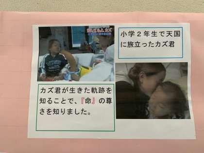 1月の道徳を振り返って,今日は1年生の道徳の掲示物を紹介します。カズ君の人生から学んだこと,それを基に,命について考えます。「一日一日かみしめながら生きる」「全力で生きる」道徳の授業は,言葉を紡ぐ良い機会です。では,「一日一日かみしめながら生きる」とは,どのようなことを指すのでしょうか,「全力で生きる」とは,具体的にどうすることなのでしょうか?