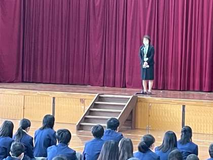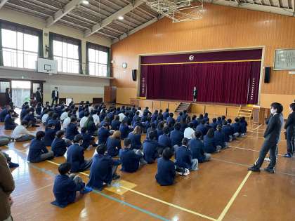 (写真:上→全体,中→新しい校長先生,下→生徒会本部の皆さんの振り返り)