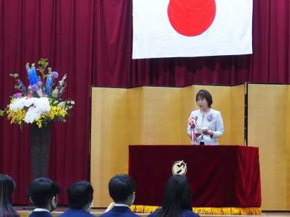 本日,61名の新たな仲間を迎えました。本当に素晴らしい晴天の下,第38回入学式が挙行されました。新入生の皆さん,そして保護者の皆様,誠におめでとうございます。お子達一人ひとりをこれから徹底的に大切にし,たくましい学び手に育てていきたいと存じます。明日は,全校集会にて,初めて全校生徒がそろいます。新入生の皆さん,中学生としての第一歩,しっかりと踏み出してください。