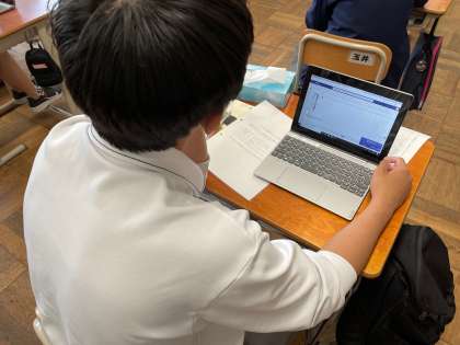 3年生の国語は,スピーチコンテストです。1〜2分で,日頃の自分を振り返って紹介しました。みんなの前で発表する姿が,立派ですね!感想はTeamsに打ち込んでみんなで共有します。自分の発表の感想をすぐに共有できるのは,改善(自己調整)につながりますね。重ねていけば,きっと素晴らしいスピーカーになることでしょう。楽しみにしています。