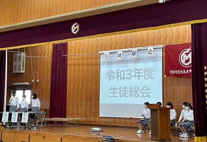 午後からは,「生徒総会」が開かれました。向島東中をより良くするために,みんなの要望を,生徒会本部・中央専門員会が検討し,その結果を発表してくれました。校長先生からも,コロナ禍で我慢ばかりをさせている中で,みんなが本当に頑張ってくれていること。そしてそれに,少しでも応えたいとお話しされました。生徒総会での決議は,これから1年を見通す大切な決めごとです。タペストリーの図柄選びなど,あたらしい試みも行われ,みんなにとって印象に残る総会になったのではないでしょうか。これから2学期に向け,向東祭の取組も計画されていきます。3学年の力で,みんなが「ヒーロー」になれるよう期待しています!