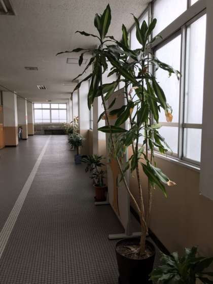 4月にいただいた観葉植物が大きくなってきました。廊下には昨年卒業した生徒&3年前に卒業した生徒が育てた観葉植物も置いてあります。