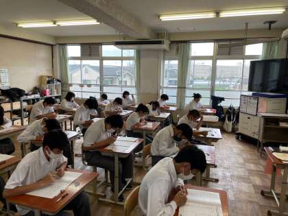 2年生では、昨日と今日の2日間で、学習確認プログラムに挑戦しました。定期テストが返ってきてすぐのチャレンジですが、粘り強く頑張ってましたね!自分の力を知るチャンス、一回一回を大切に使ってください。
