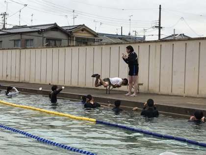 1年生の体育では、平泳ぎの足の動きを学んでいます。水泳ももう少し。頑張って学んでいきましょう。