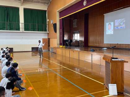 今日、一学期終業式を体育館で行いました。陸上部、良い歯、読書記録について表彰を行ったあと、校長先生、生徒指導部長の先生からお話しをいただきました。