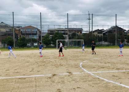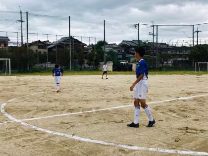 サッカー部は夏休み前半のトレーニングを終えました。まんえん防止のことから、対外試合はなくなりましたが、OBに協力してもらい、成果を試す試合を行いました。