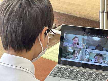 8月を振り返るコーナーです。写真は、オンラインでALT(英語のネイティブスピーカー)の先生や、他校の生徒さんたちと交流している様子です。やりとりは当然、英語です。これは、京都市の中学校英語の研究会の先生方が企画してくださいました。その場に行かなくても、英語で交流できる手軽さは、オンラインならではですね。英語を話す度胸があれは、チャンスはいくらでもある、ということがよく分かりました。チャレンジした生徒のみなさんに、拍手です!これからもどんどんトライしてくださいね。