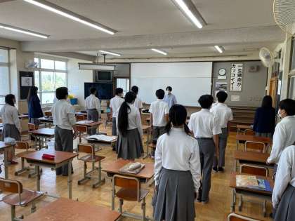 昨日の4限目,3年生の美術の授業にお邪魔しました。出席確認の間,静かに心穏やかに待ち,あいさつの前には服装を正し,先生としっかりあいさつを交わす。授業の始まりを整えることで,温かみと穏やかさの中に規律を大切にする雰囲気ができています。