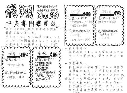 先日の中央専門員会を受けて,生徒会だより「飛翔」が16日に発行されています。